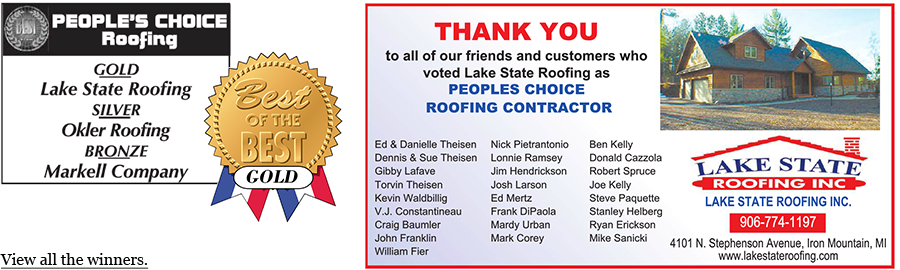 Lake State Roofing is voted the 2014 Peoples Choice winner!